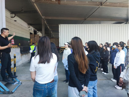 随后,同学们前往NX国际物流(中国)的天津滨海新区的雅马哈仓库,龙经理为同学们介绍库外月台和装卸搬运流程,仓库管理的孙科长为同学们介绍了雅马哈仓库内部的布局、仓库满足客户需求的个性化调整和流程可视化管理的具体细节。