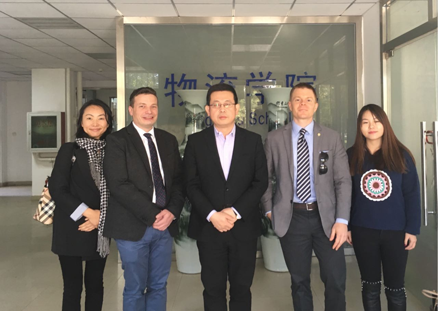 欧道明大学教授与姜旭副院长,就两校学生交流交换合作、教师互访等方面的合作进行了深入交流,回望两校已有的合作成果。姜旭副院长指出,两校国际化交流合作不仅在于学生的交换学习、以及学术讲座。今后,双方合作可以深入到课堂教学之中,使学生的课堂实现“中美结合”国际化效果,以此来推进“国际化实战型”物流人才的培养。