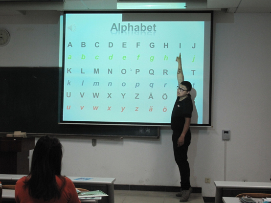 讲座过程中,李胤奇老师还向在座的同学们教授了德语字母表,他的教学方法可以用六个字概括——简单、实用、有趣。其间,他还介绍了很多德国的知名品牌,例如阿迪达斯、彪马、BOSS、Triumph、NIVEA、Zwilling等等,展示了德国企业务实的文化特点。