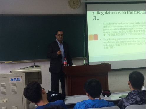 首先,Roberto总监为同学们介绍了冷链物流的定义、作用、特点及相关知识,接着分析国际及中国冷链市场走势,他指出冷链物流在国际及中国有很大的发展空间。此外,Roberto总监还为同学们讲解了先进的冷藏技术,着重介绍了冷藏集装箱及其设计要求和冷藏标准;关于冷链战略和进程的定位,Roberto总监指出要提升全球冷链市场如设备市场、容量仓库等,并对近年来中国、印度、墨西哥以及加拿大的冷链储存不断增加的现状进行了特别说明。最后,Roberto总监详细论述了冷链发展的十大趋势:冷链全球化、提高供应链效率、模式转换、物流外包等,并指出当前冷链物流所面临的问题及解决方案。