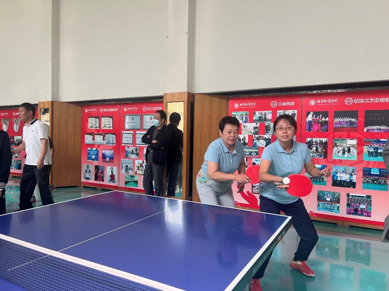 分工会组织学院教职工参加学校组织的“喜迎二十大建功新时代”教职工乒乓球比赛。