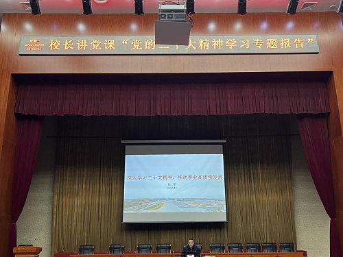 全体教职工、学生党员代表及联系班级20级物流管理2班学生讲授《深入学习党的二十大精神,推动事业高质量发展》专题党课。