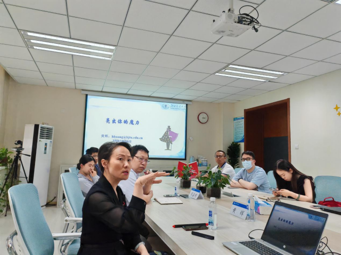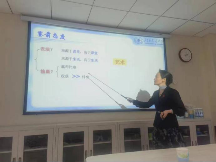 黄教授首先为全体青年教师分享了《高校教学比赛的经验体会与常见误区》。无论是介绍赛前态度的建立、内容选择、教学设计,还是准备环节、教学呈现和重点建议,都非常引人入胜,全程一个小时时间采用现场上课的方式,让青年教师深深感受到了教学的魅力,讲者、听者双方沟通密切,时常点头赞同,时常掌声雷动,展现了一堂生动的教学实践课。指导青年教师如何备赛。黄教授的生动演绎不仅为参与青教赛的老师提供有效的指导,更能够为所有教师们日常教学设计、教学方法、教学理念的提升给出合理的途径。黄教授阐释,教学呈现需要生动化,要将知识点内在联系形象化,要以学生为本,明确学生能够获得的知识、提升的技能或开拓的价值观。分享过后黄讲授还针对教师们提出的问题,解答了青年教师目前面临的问题和疑惑。黄教授的倾囊相授,让青年教师们理解了大学课程的教育教学理念,帮助大家提升授课技能,老师们纷纷表示受益良多。
