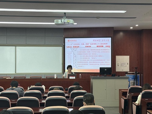 张耀荔教授从“总体框架”“主题”“逻辑”三个角度,带领全体与会人员深刻领悟党的二十大精神,指出要从政治和全局高度深刻认识主题教育的重要意义,深入贯彻落实党的二十大精神。从“总体框架”角度,张耀荔教授讲授到党的二十大报告总体框架结构分为五大板块,五大板块之间都具有严密的逻辑性;从“主题”角度,张耀荔教授讲授到党的二十大报告主题明确宣示了党在新征程上举什么旗、走什么路、以什么样的精神状态、朝着什么样的目标继续前进;从“逻辑”角度,张耀荔教授对党的二十大报告内容进行了全面系统的梳理。张耀荔教授强调“五个牢牢把握”是对党的二十大报告最精准的解读、最权威的辅导,是贯彻落实党的二十大精神的重要思想指引和行动指南。全体师生要做到“五个牢牢把握”,在党的旗帜下团结成“一块坚硬的钢铁”,心往一处想、劲往一处使,努力推动中华民族伟大复兴号巨轮乘风破浪、扬帆远航。最后,张耀荔教授对新时代青年的使命与担当进行了具体阐述,指出新时代青年拼搏正当其时,圆梦恰逢其势,要勇于承担历史赋予的使命,在大疫面前积极彰显青年的能力和担当,在灾难面前主动展示青年的果敢和勇气,在大事面前竭力显示青年的激情和自信。中国梦是历史的,现实的,也是未来的,是我们这一代人的,更是青年一代的,中华民族伟大复兴的中国梦终将在一代代青年的接力奋斗中变为现实。