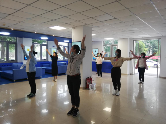 分工会以“每天锻炼半小时,遇见更好的你”为主题,组织恢复工间操制度,得到了老师们的积极响应。
