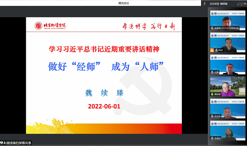 随后,魏续臻教授领学了4月21日习近平总书记给北京科技大学老教授的回信、4月25日习近平总书记在中国人民大学考察调研的讲话、习近平总书记在庆祝中国共产主义青年团成立100周年大会上的重要讲话精神、祝贺中国儿童中心成立40周年的贺信等重要讲话精神,并对总书记系列讲话精神进行了详尽生动的解析,进一步加深了与会同志对讲话精神的理解与把握。