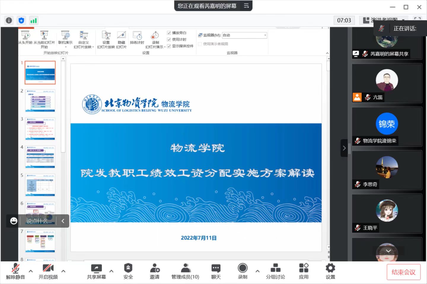 会议中,芮嘉明老师对《方案》进行了详细解读,并对教职工提出的意见建议进行了逐一反馈。全体代表展开讨论和审议,经过线上投票,17人同意,同意票超过全体与会代表2/3,该《方案》通过。
