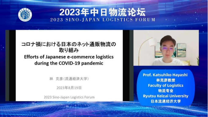Professor Katsuhiko Hayashi of Circulation and Logistics System mayor in the University of Circulation Economics of Japan. The theme of his speech is "The Efforts of Japanese E-commerce Logistics during the Epidemic". He pointed out that during the pandemic, the number of consumers using online shopping has sharply increased. Online store operators have rapidly improved their large-scale commodification facilities and decentralized distribution bases, built a flexible EC logistics system, and gradually developed a platform self delivery model.
