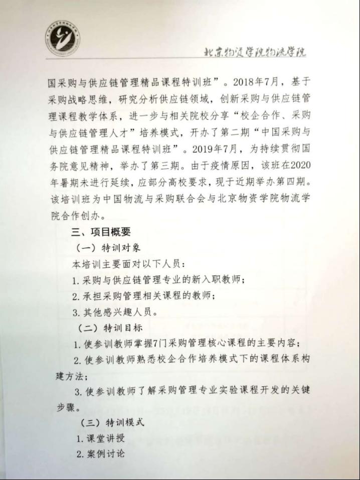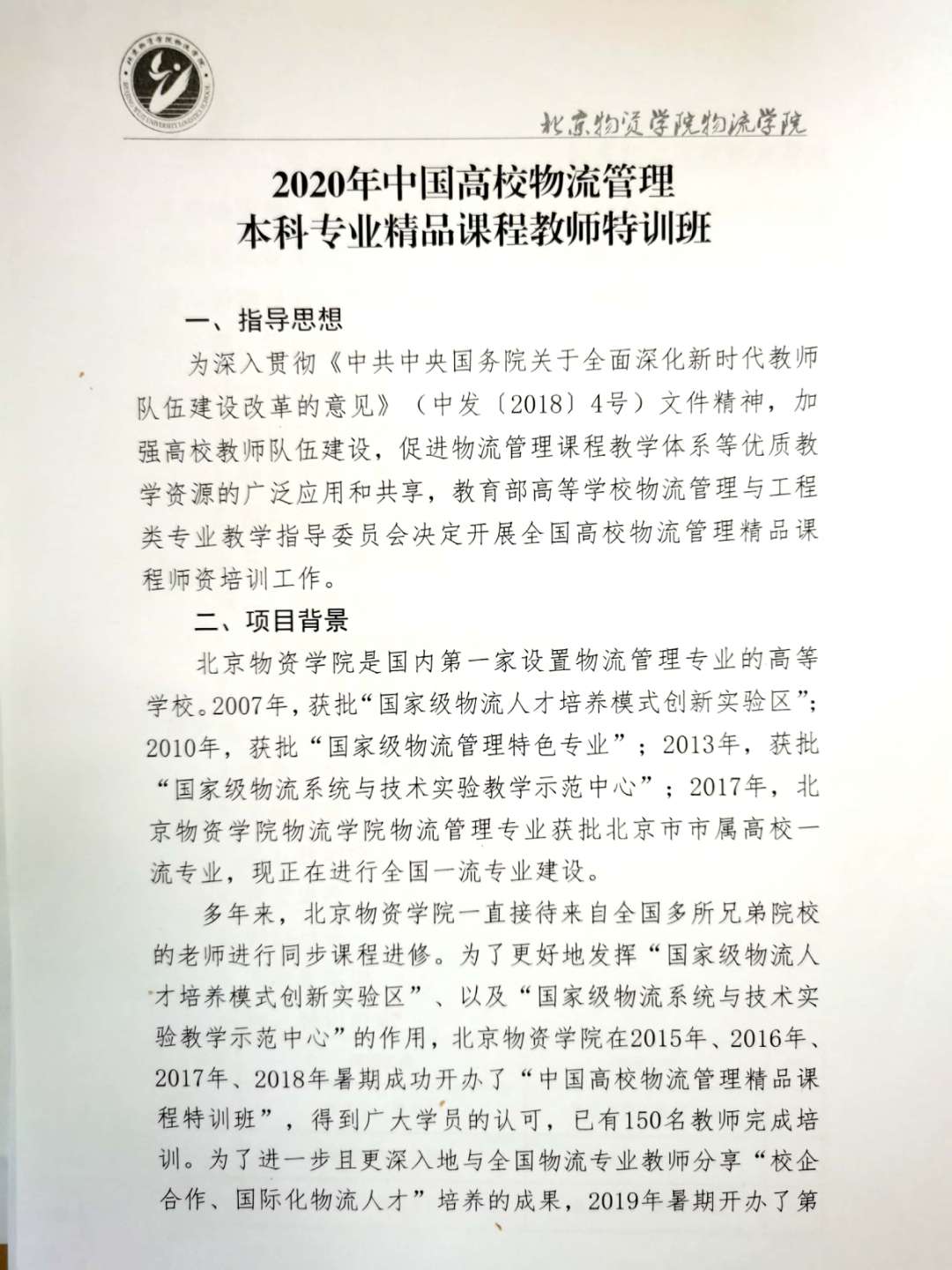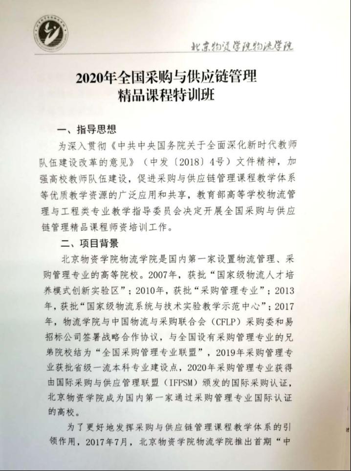 2020年中国高校物流管理(采购与供应链管理)本科专业精品课程教师特训班(开班)