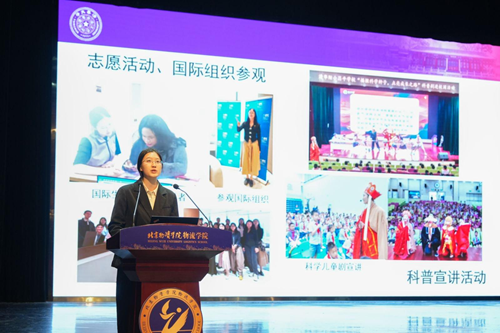 而立向新:新时代 新物流 新征程》中拉开帷幕。宣传片生动展示了学院的发展历程、学科建设成果、师资队伍力量、人才培养实效及国际化办学特色,生动呈现了物流在国家战略需求中的重要作用,有效激发了新生专业自豪感,为新生勾勒出物流专业的广阔前景。随后,学院党委书记郝庆代表学院致辞,她向新生表达热烈欢迎,并强调学院将始终秉持“为党育人、为国育才”使命初心,希望同学们传承物流先驱的实干精神,肩负“货畅其流”的时代使命,赓续“刚毅坚卓、厚德载物”的院训精神,将个人理想融入国家发展大局,在服务物流强国建设的实践中书写青春华章。
