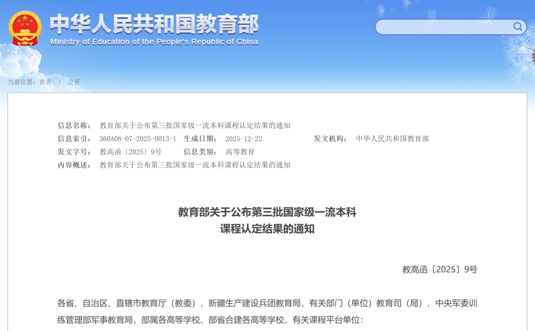 近日,教育部发布《教育部关于公布第三批国家级一流本科课程认定结果的通知》(教高函〔2025〕9号),绿帽小说
