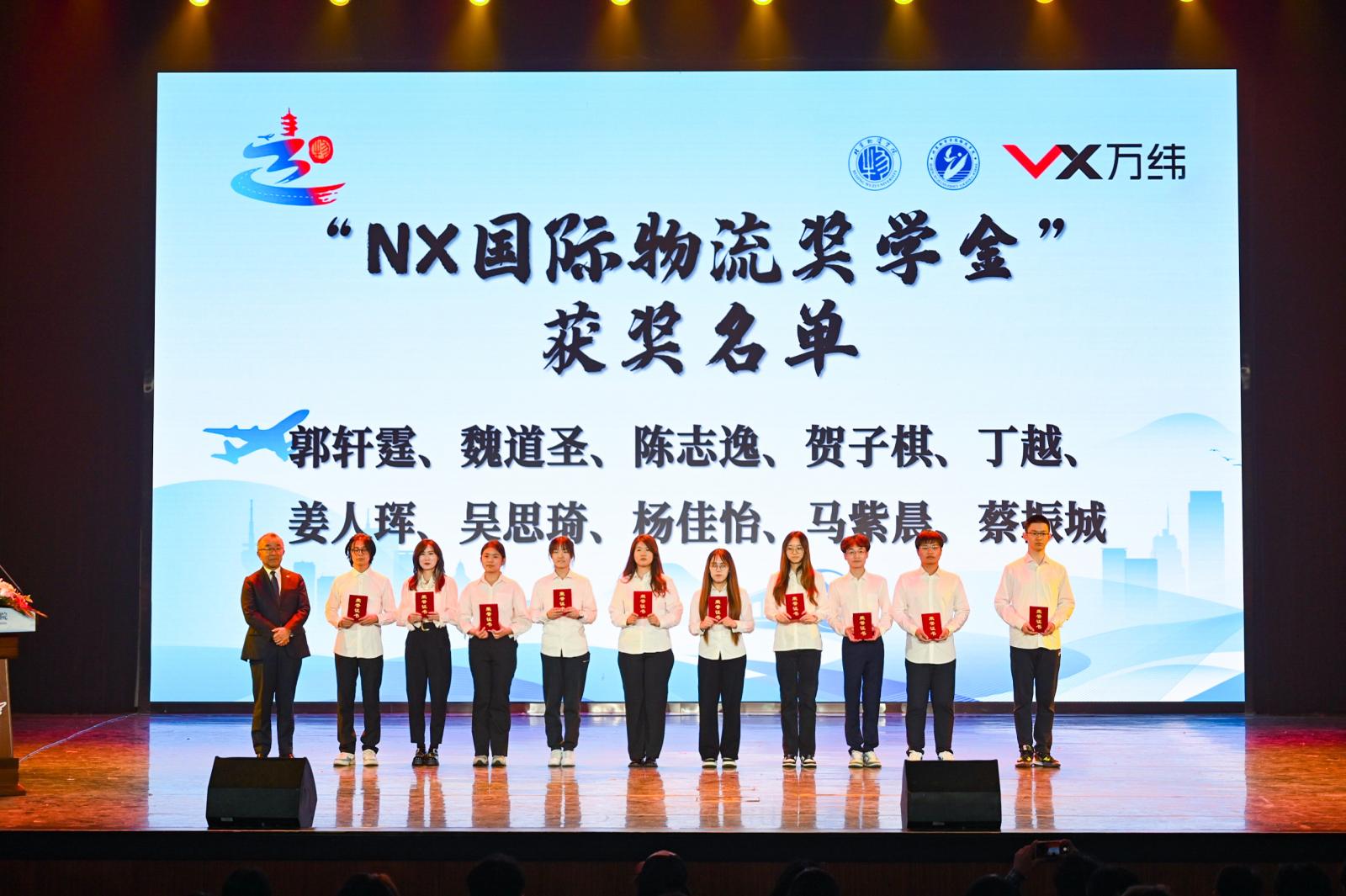 2024年5月6日,NX集团东亚地区总裁松尾纯利为获得“NX国际物流奖学金”的同学颁发奖学金获奖证书。