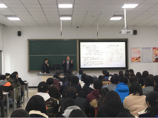 2017年11月,日本流通经济大学苦濑博仁教授为同学们介绍了日本物流领域大数据的应用情况和日本发生灾害时的人道主义物流情况并介绍了日本面对灾害时的应对措施,加深了同学们对日本防灾物流的认识。
