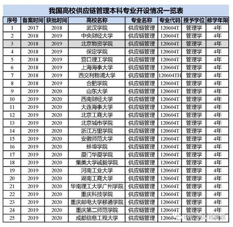 等7所高校;2019年17所高校备案设置该专业。截至目前,共25所本科院校开设供应链管理专业。